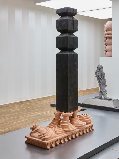 'Marc Vermeulen [MV]', Fernando Marques Penteado, 2020, © de kunstenaar, foto: courtesy Mendes Wood Sharon Van Overmeiren Geboren in 1985 in Antwerpen, België. Woont en werkt in Antwerpen. In de sculpturen van Sharon Van Overmeiren komen werelden samen. Ze combineert vormen en beelden uit de klassieke oudheid met cartoons, middeleeuwse symbolen en precolumbiaanse kunst. Zo ontstaan figuren die tegelijk herkenbaar en vreemd zijn — wezens die lijken te bewegen tussen tijden en culturen.